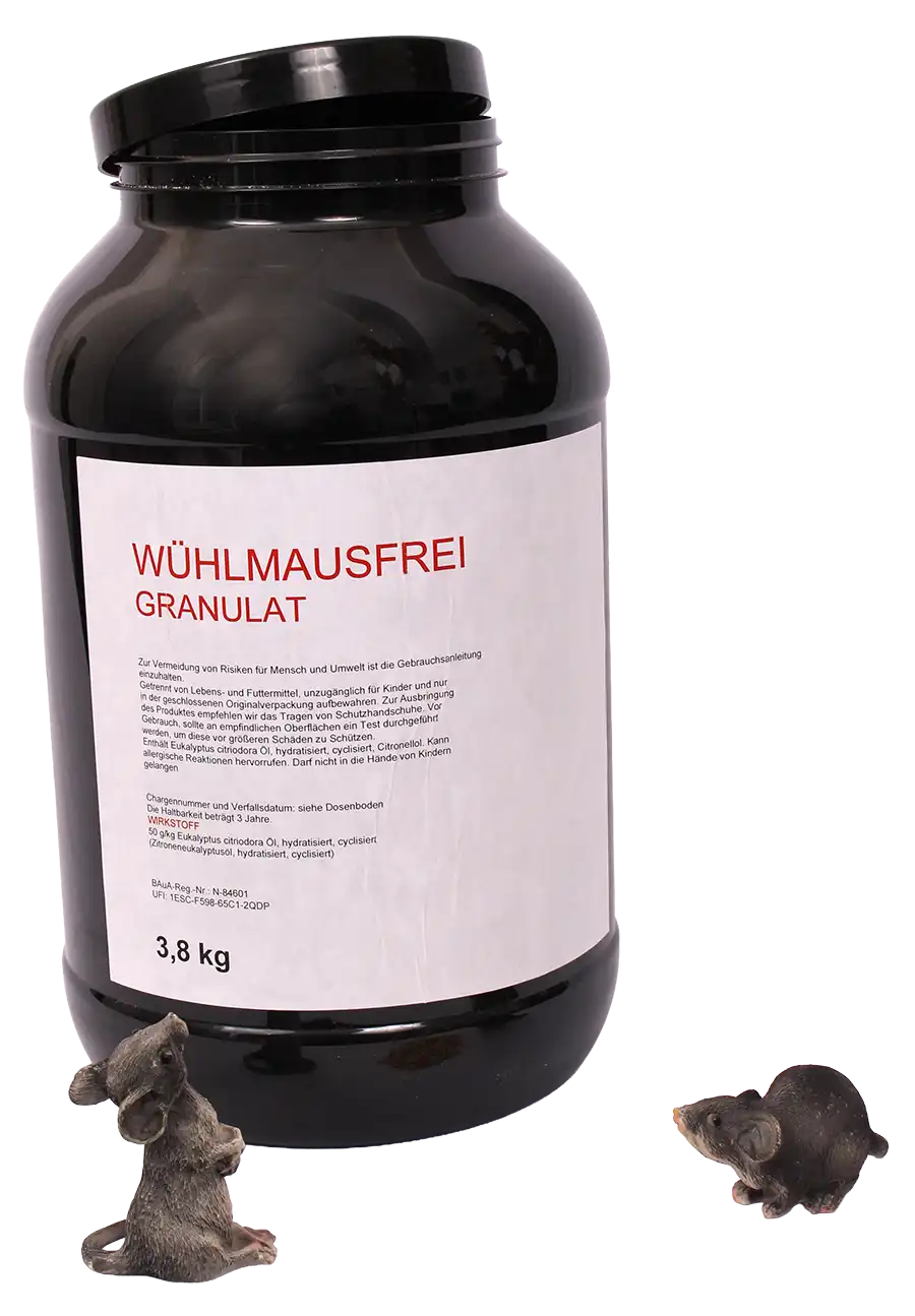 Der spezielle Duft hält Mäuse, Maulwürfe und andere Nager zuverlässig fern – biologisch abbaubar, sicher und wirksam.