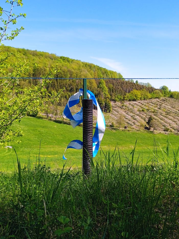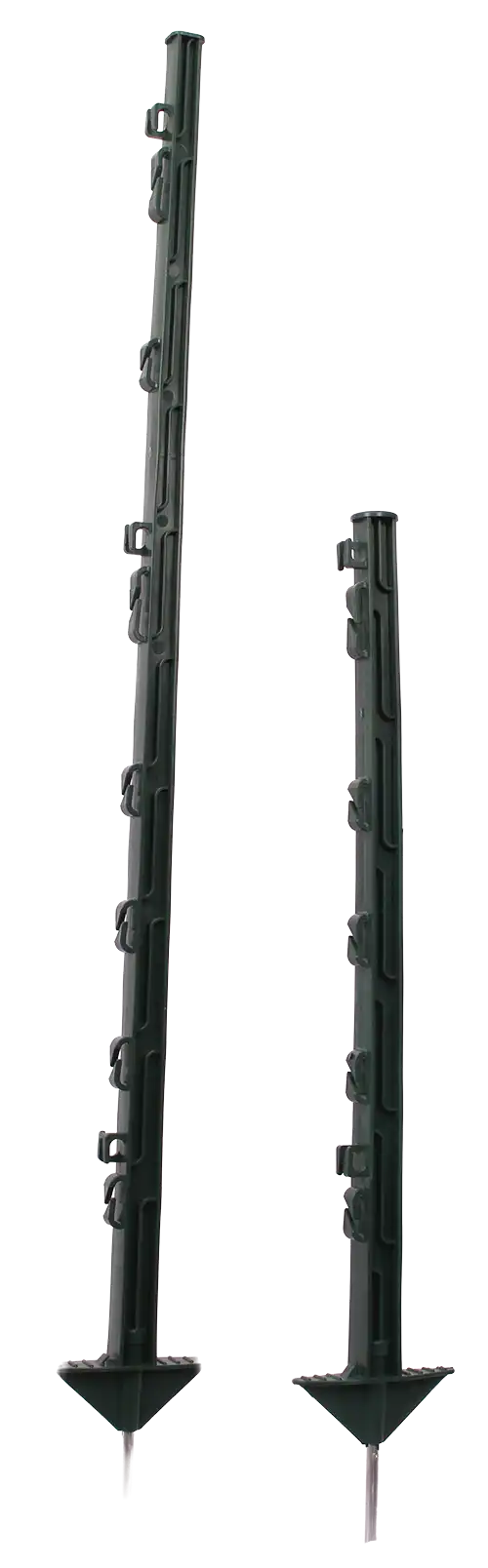 Unsere stabilen, glasfaserverstärkten Weidezaunpfähle dienen als zuverlässige Halterung für STUNK® Duftsäulen oder unser Flatterband.